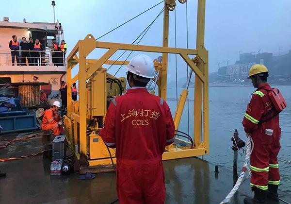 21時31分,開始對重慶萬州墜江公交車進行起吊工作。23時45分,成功將墜江公交車整體打撈出水。