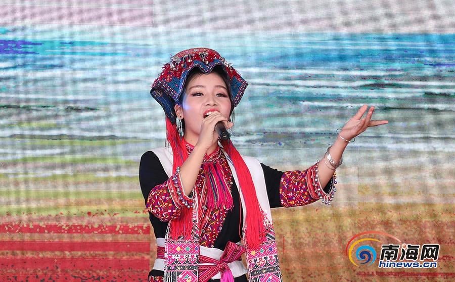 五指山苗族歌手曾若馨身著苗族傳統服飾,傾情演唱了歌曲《春雨來到咱苗村》。南海網記者李昊攝