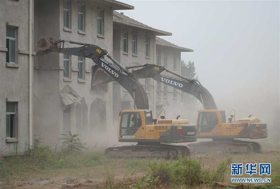 2018年8月14日,大型機械對陜西西安市鄠邑區蔣村鎮的違建別墅進行拆除。新華社記者 邵瑞 攝