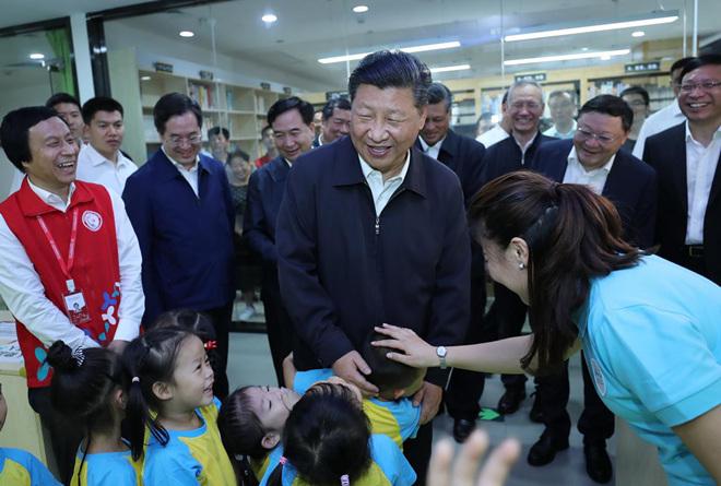 2018年10月24日中午,正在深圳市考察的習(xí)近平來到龍華區(qū)民治街道北站社區(qū),走進(jìn)社區(qū)黨群服務(wù)中心。“辦事方便嗎?”“對(duì)社區(qū)環(huán)境滿意嗎?”“退休生活怎么樣?”他問得十分仔細(xì)。在社區(qū)兒童之家,當(dāng)孩子們看到習(xí)爺爺來了,一個(gè)個(gè)興奮地跑上前來,熱情擁抱習(xí)爺爺。總書記親切地摸摸他們的小腦袋,同他們打招呼。