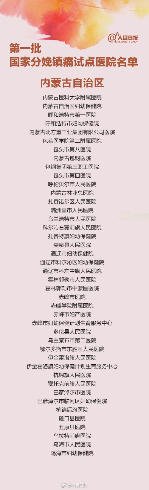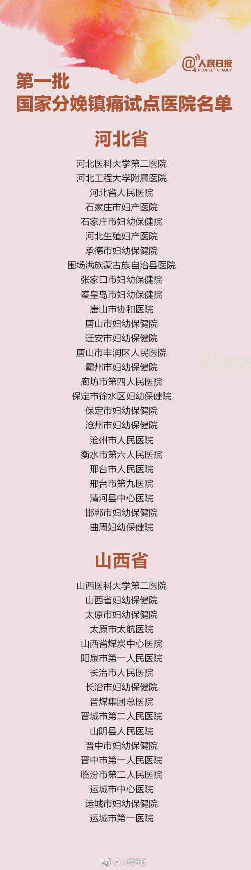 轉存!首批國家分娩鎮痛試點醫院名單來了!