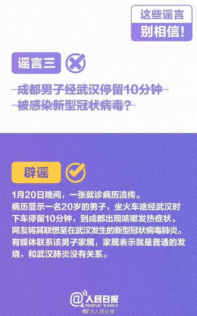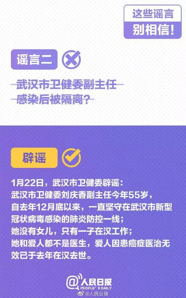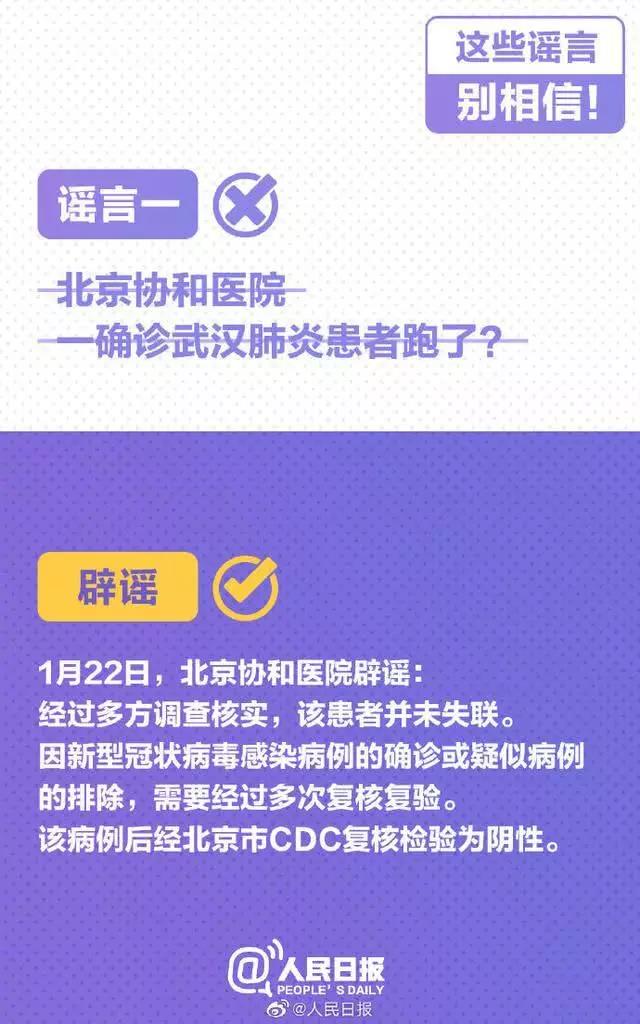 北京協和醫院一確診武漢肺炎患者跑了?武漢市衛健委副主任感染后被隔離?成都男子經武漢停留10分鐘被感染新型冠狀病毒?新型冠狀病毒感染的肺炎引發關注,與之同樣贏得“關注”的還有不少謠言。戳圖了解不信謠,不傳謠!轉擴!