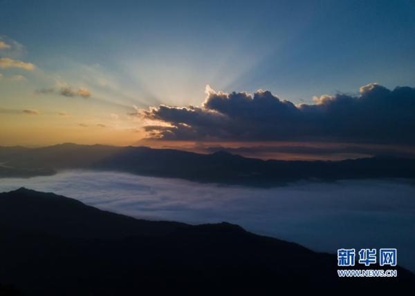 這是11月20日拍攝的福建省三明市將樂縣國家級自然保護區晨曦(無人機照片)。新華社記者 宋為偉 攝