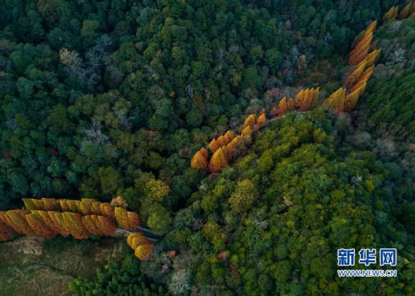 這是11月19日拍攝的福建省三明市將樂縣國家級自然保護區水杉大道(無人機照片)。新華社記者 宋為偉 攝