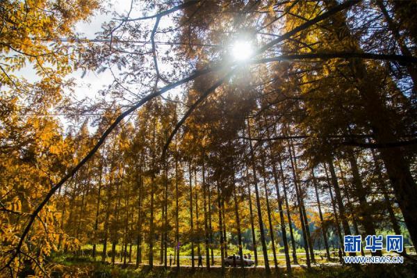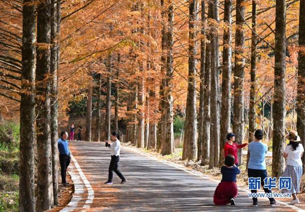 11月20日,游客在福建省三明市將樂縣國家級自然保護區水杉大道游覽。新華社記者 宋為偉 攝