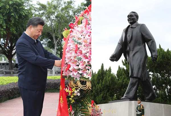 2020年10月14日,深圳經濟特區建立40周年慶祝大會在廣東省深圳市隆重舉行。中共中央總書記、國家主席、中央軍委主席習近平在會上發表重要講話。這是當天下午,習近平來到蓮花山公園,向鄧小平同志銅像敬獻花籃。新華社記者 王曄 攝