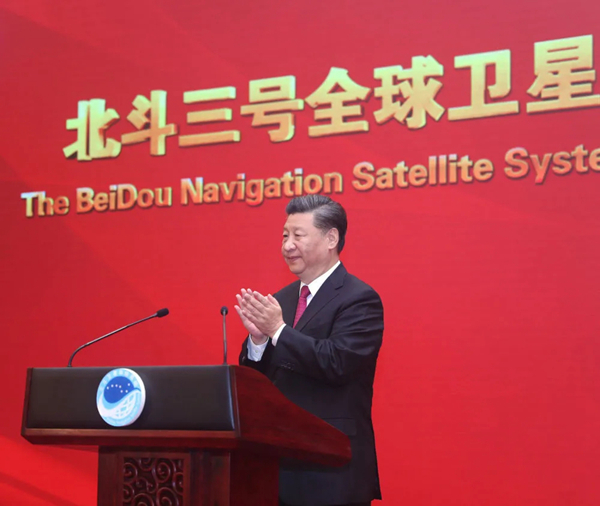 2020年7月31日上午,北斗三號全球衛星導航系統建成暨開通儀式在北京舉行。中共中央總書記、國家主席、中央軍委主席習近平出席儀式,宣布北斗三號全球衛星導航系統正式開通。新華社記者 鞠鵬 攝