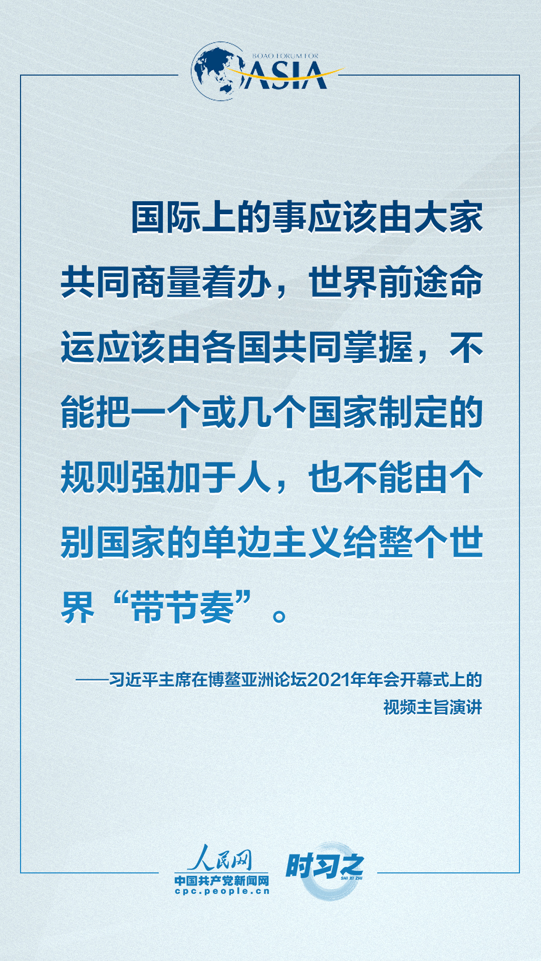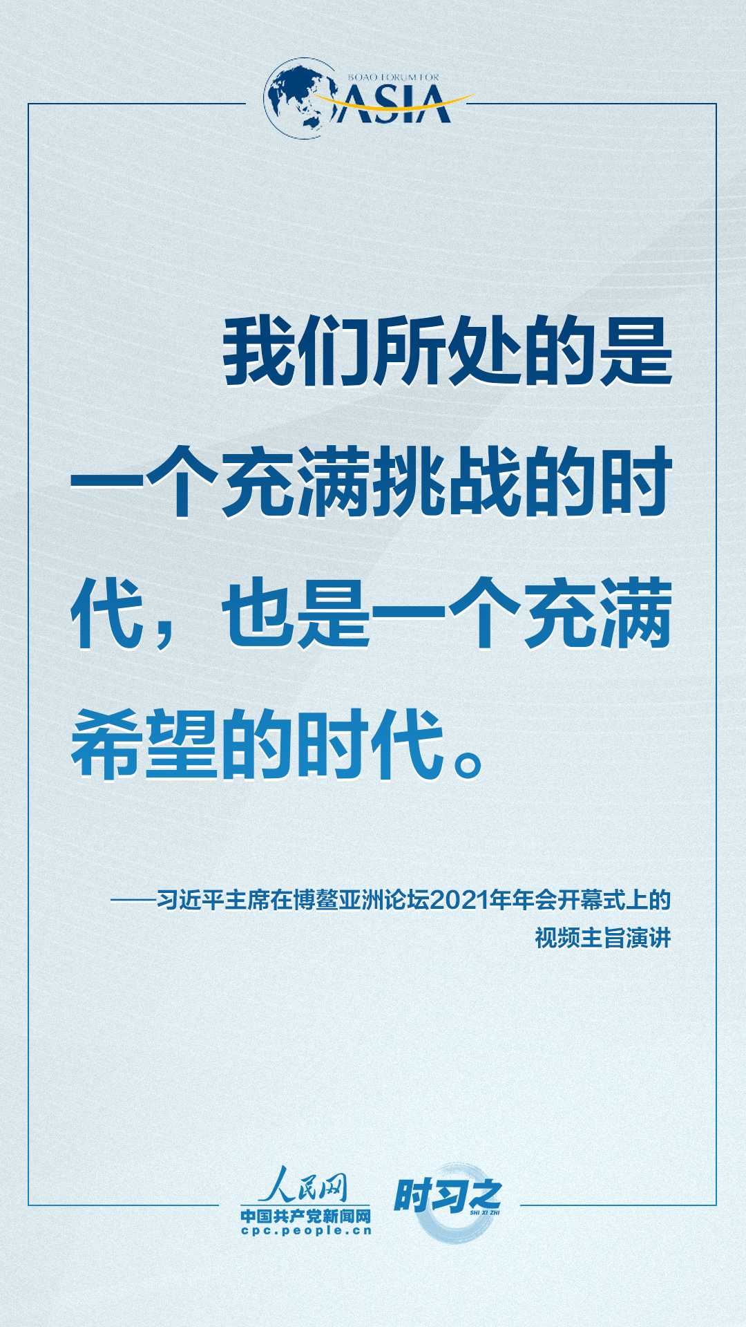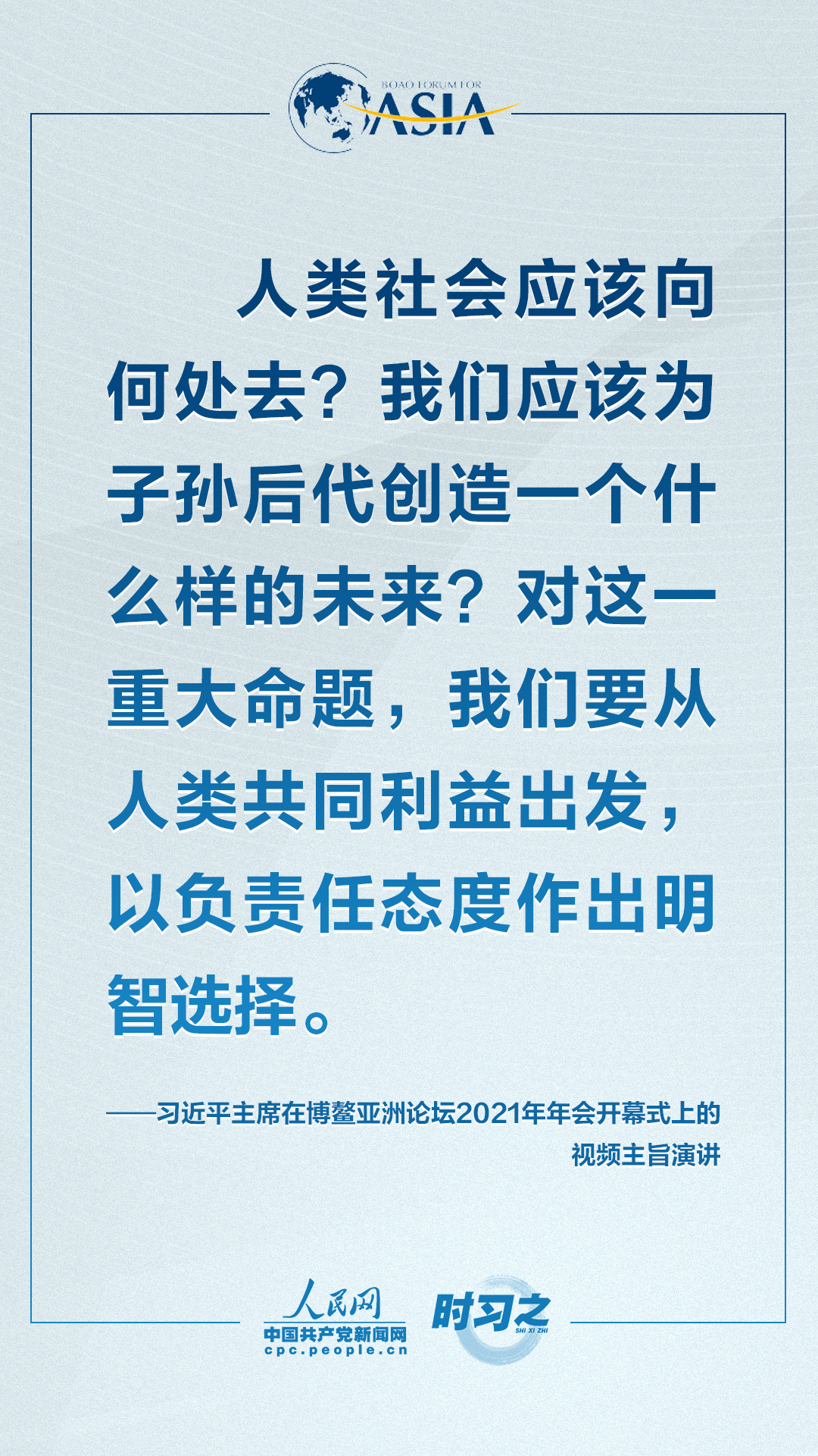 4月20日上午,博鰲亞洲論壇2021年年會開幕式在海南博鰲舉行,國家主席習近平以視頻方式發表題為《同舟共濟克時艱,命運與共創未來》的主旨演講。面對“人類社會應該向何處去?我們應該為子孫后代創造一個什么樣的未來?”的重大命題,習近平這樣對世界說。qTz安康新聞網