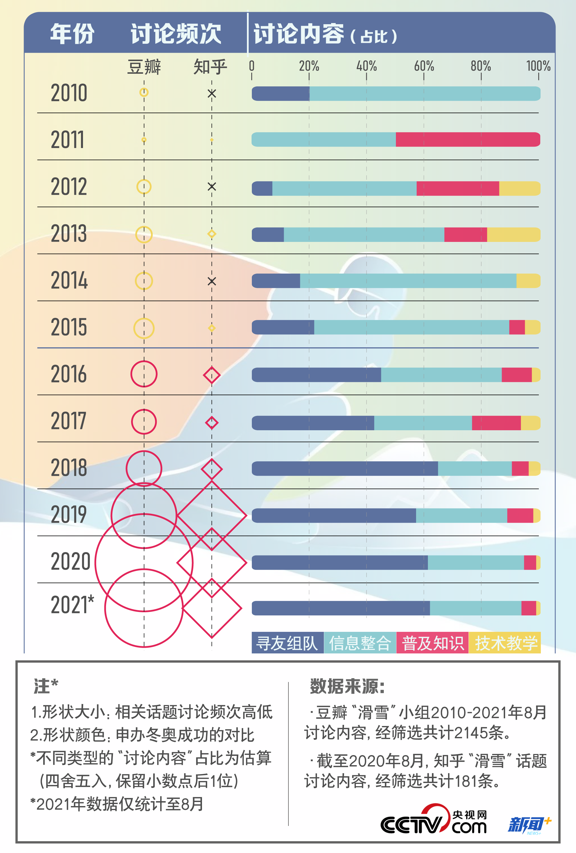 此外,人們對冰雪運動關注和討論的內容也悄然改變。統計發現,隨著中國互聯網的發展,2016年開始,“滑雪”在網絡平臺的討論頻次較前五年相比明顯增加,“尋友組隊”成為大部分愛好者的第一需求,而且討論的內容也更為豐富多元,側面反映了滑雪項目正逐漸脫離“小眾”,走向“大眾”。rSy安康新聞網
