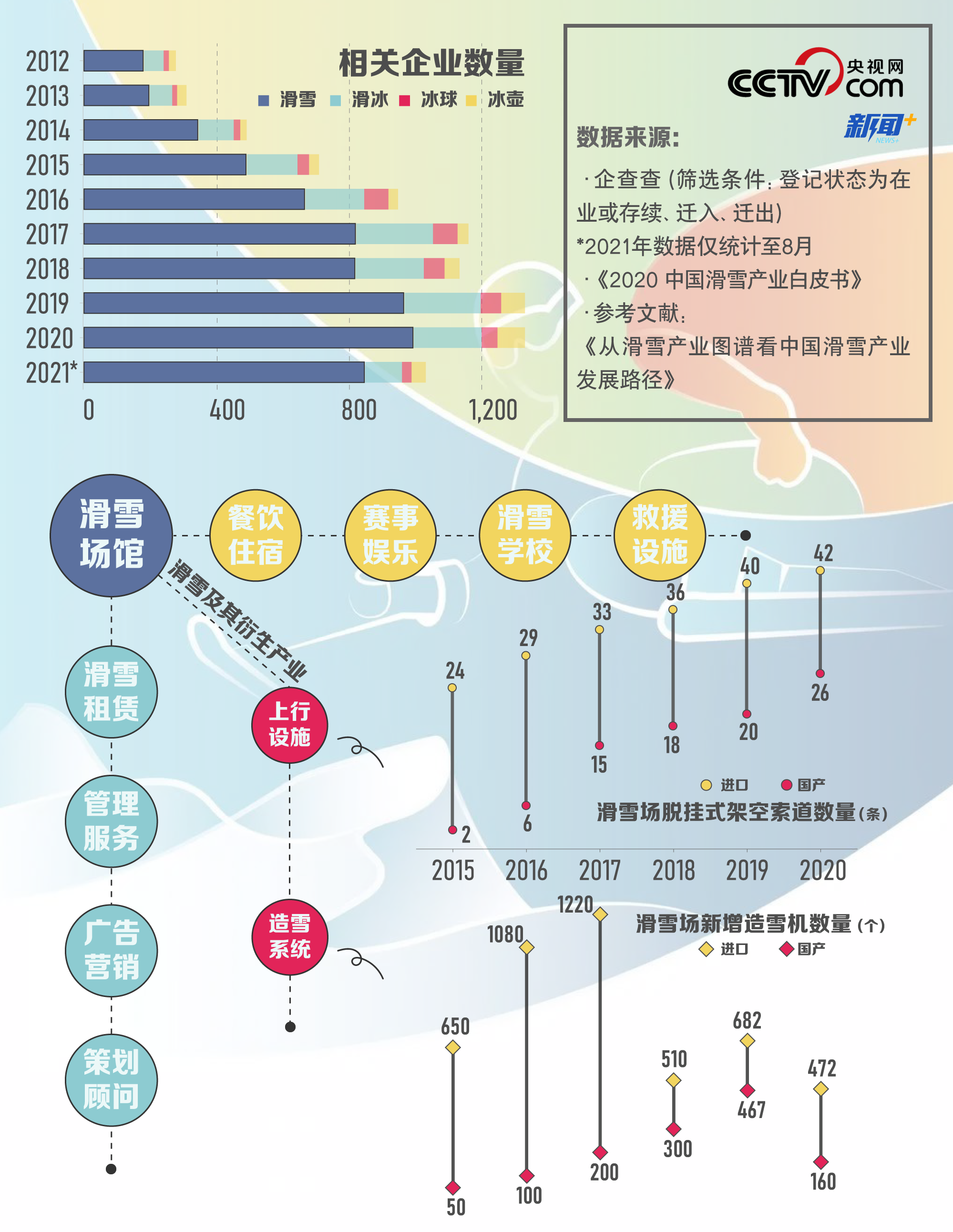 大眾對于冰雪運動的衍生需求給冰雪產業的發展奠定了一定基礎。近幾年,中國冰雪產業蓬勃發展,相關企業數量呈明顯上升趨勢,2020年僅“滑雪”類企業數量就超過2016年四類冰雪企業數量總和。同時,我國冰雪產業規模擴大、覆蓋范圍也變廣,國產品牌逐漸“嶄露頭角”。比如國產脫掛式架空索道的發展勢頭迅猛,從2015年僅有個位數增長到2020年的26條,此外國產造雪機也正代替進口商品被雪場經營方使用。由此可見,人們對于冰雪的喜愛不僅表現在“直接參與”,還間接推動了衍生產業的發展。rSy安康新聞網