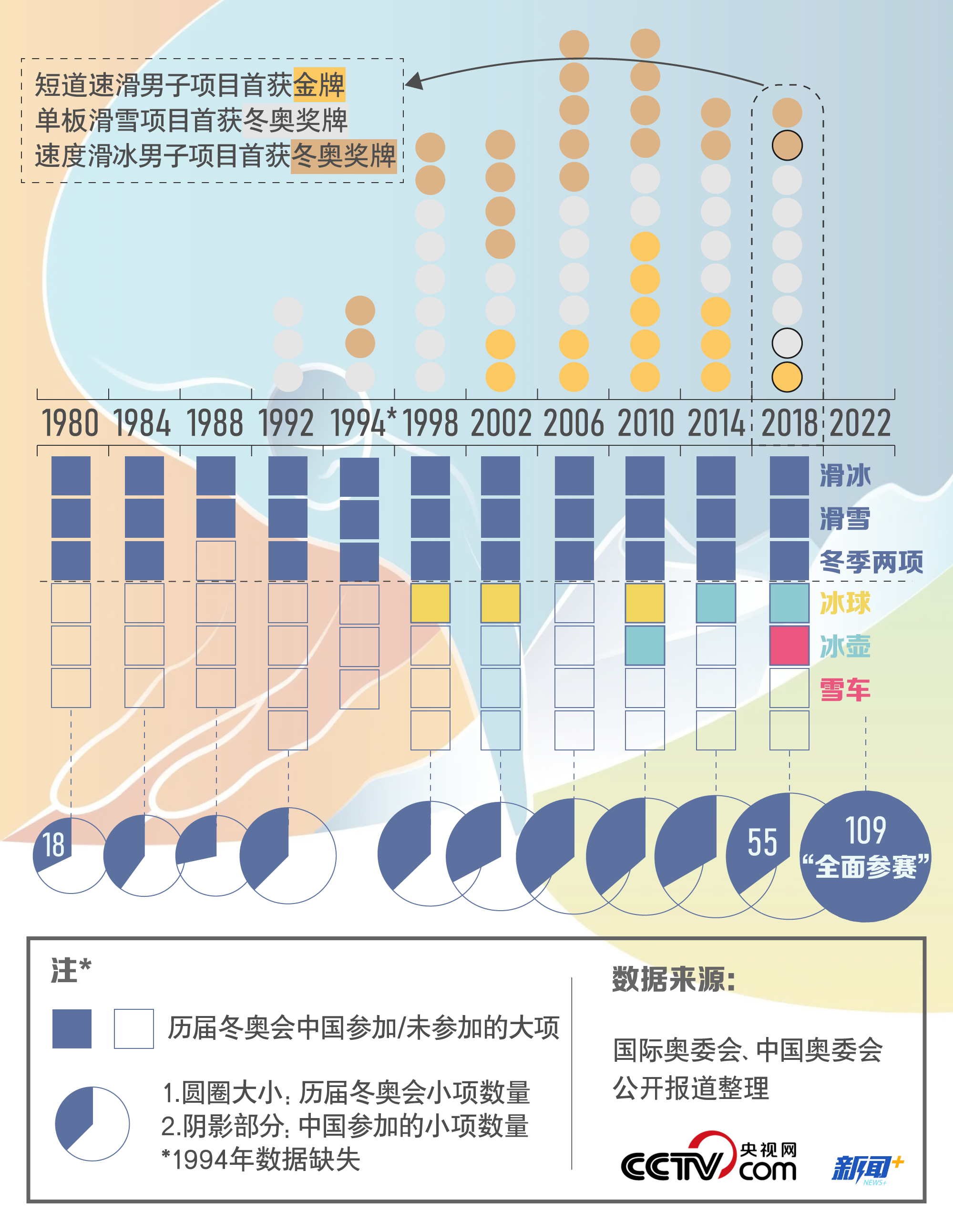 北京獲得冬奧會舉辦權前,中國代表團在歷屆冬奧會上參賽的大項(Sport)僅占所有大項種類的半數左右,除了滑冰、滑雪和冬季兩項等“常規”項目外,其他項目中零星可見中國運動員的身影。也就是說,許多冬季項目在中國仍然是空白——據統計,在北京冬奧會109個小項(Event)中,大約有三分之一此前并未開展。短短幾年間,中國競技冰雪運動惡補短板,力爭在2022年冬奧會上,從頭至尾都有帶有五星紅旗標志的中國運動員站在賽場上,實現“全面參賽”目標。rSy安康新聞網