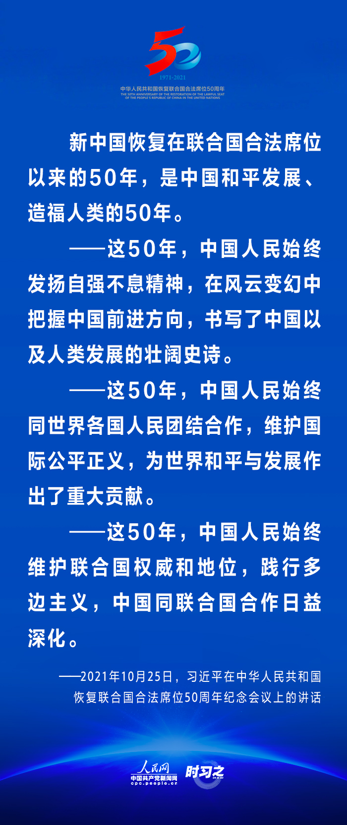 10月25日,國家主席習近平在北京出席中華人民共和國恢復聯合國合法席位50周年紀念會議并發表重要講話。在講話中,習近平回顧了中華人民共和國恢復在聯合國合法席位50年以來的重大成就,面對百年未有之大變局,重申中國將始終做世界和平的建設者、全球發展的貢獻者和國際秩序的維護者。 WTT安康新聞網