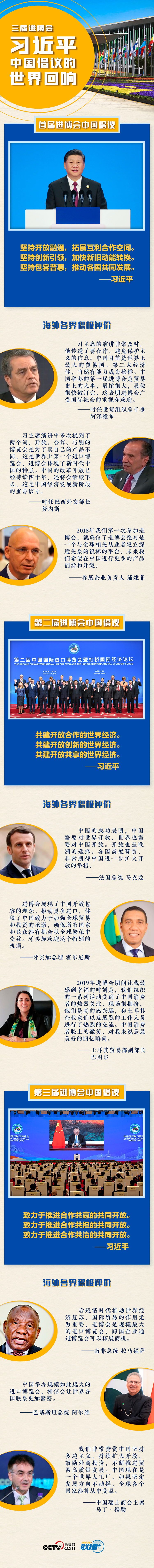 在歷屆進博會上,習(xí)近平主席都提出了推動建設(shè)開放型世界經(jīng)濟的中國倡議,宣布了中國擴大對外開放的一系列務(wù)實舉措,贏得國際社會的廣泛認(rèn)同。