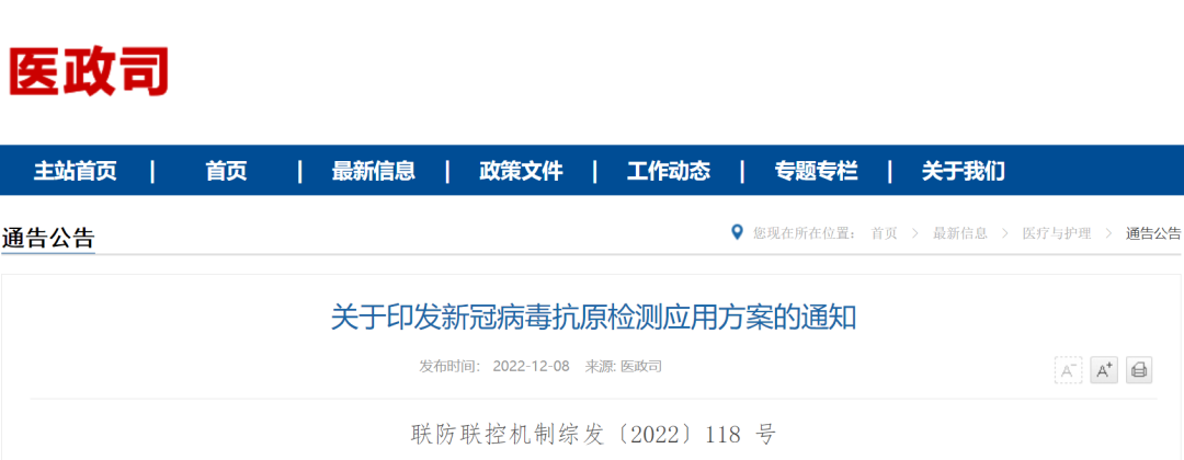 為進一步優化新冠病毒檢測策略,做好防控工作,國務院應對新型冠狀病毒肺炎疫情聯防聯控機制綜合組制定了《新冠病毒抗原檢測應用方案》,現印發給你們,請認真組織實施。