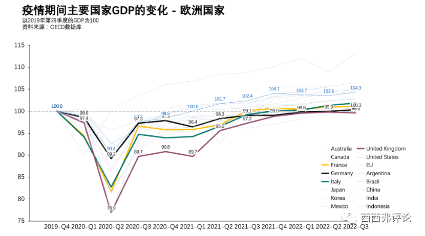 英法德意四個歐洲國家,從2019年四季度到2022年三季度,經濟基本上原地踏步。
