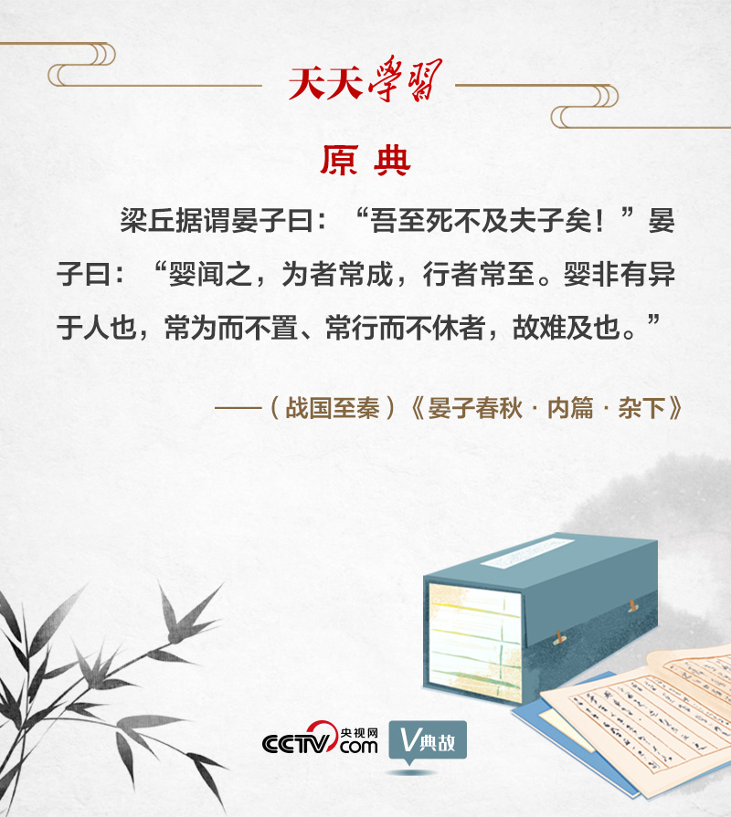 “為者常成,行者常至”,出自春秋時期齊相晏子與大夫梁丘據的一段對話。梁丘據與晏子既是朋友,也是政治對手。一次,他對晏子說:“我恐怕到死也趕不上先生您了!”晏子說:“我聽說,努力去做的人通常可以成功,不倦前行的人常?梢缘竭_目的地。我和別人比并沒有什么不同,只是經常做個不停、走個不停罷了,所以很難被趕上。”