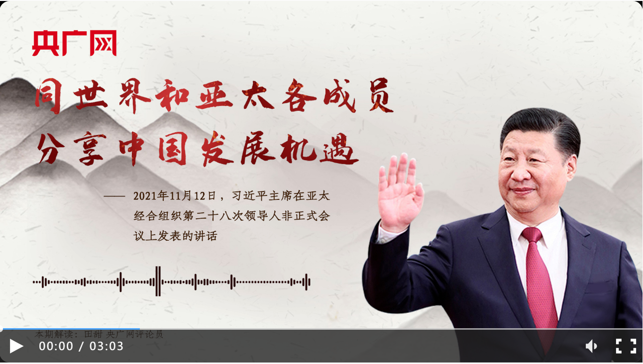 這段話出自2021年11月12日習近平主席在亞太經合組織第二十八次領導人非正式會議上發表的講話。