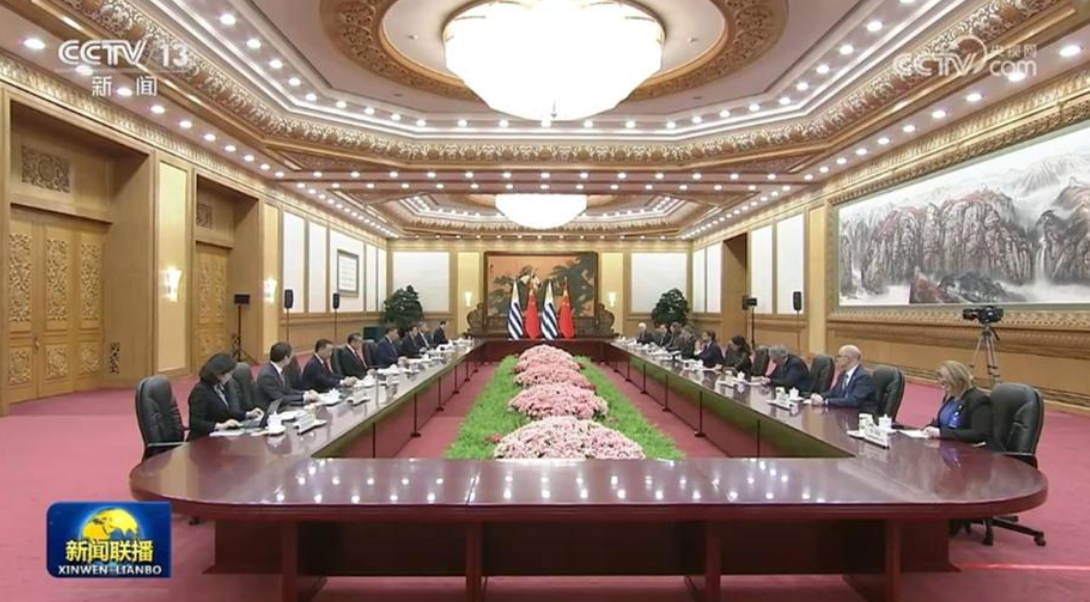 11月22日下午,國家主席習近平在人民大會堂同來華進行國事訪問的烏拉圭總統拉卡列舉行會談。兩國元首宣布,將中烏關系提升為全面戰略伙伴關系。