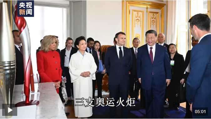 三個(gè)多月前,正在法國(guó)進(jìn)行國(guó)事訪問的習(xí)近平主席贈(zèng)送給馬克龍總統(tǒng)北京雙奧火炬,馬克龍總統(tǒng)則以巴黎奧運(yùn)火炬回贈(zèng)。習(xí)近平主席說:“法國(guó)是一個(gè)體育強(qiáng)國(guó),我衷心祝愿巴黎奧運(yùn)會(huì)取得成功。中方將派出高水平代表團(tuán)赴法參賽。”