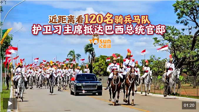 當地時間11月20日,習近平主席乘坐專車在騎兵馬隊護衛下駛入巴西總統官邸,出席盧拉總統舉行的歡迎儀式。Vbn安康新聞網