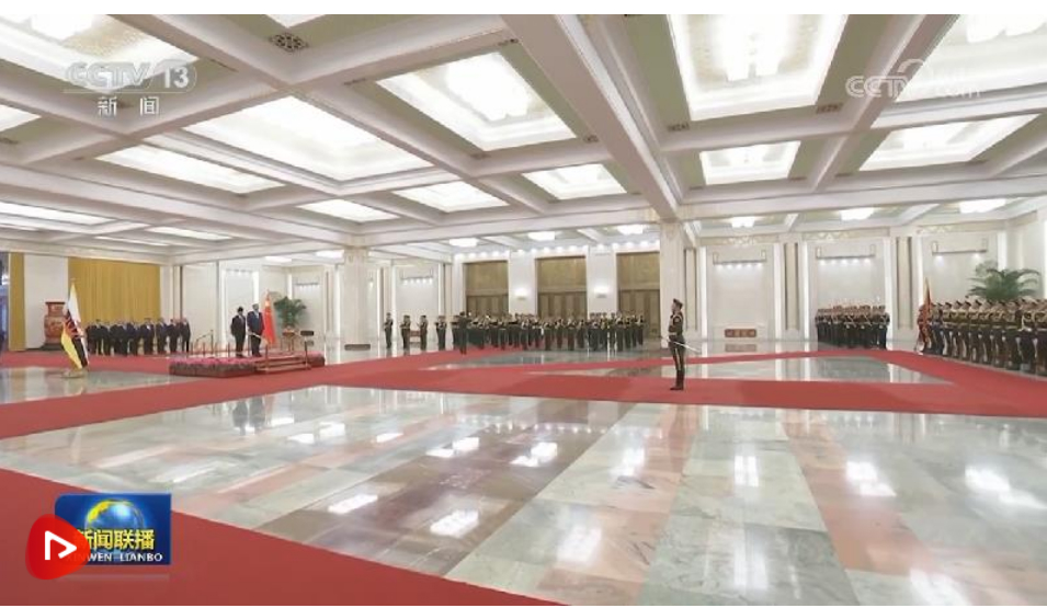 2月6日上午,國(guó)家主席習(xí)近平在北京人民大會(huì)堂同來(lái)華進(jìn)行國(guó)事訪問(wèn)的文萊蘇丹哈桑納爾舉行會(huì)談。這是會(huì)談前,習(xí)近平在人民大會(huì)堂北大廳為哈桑納爾舉行歡迎儀式。