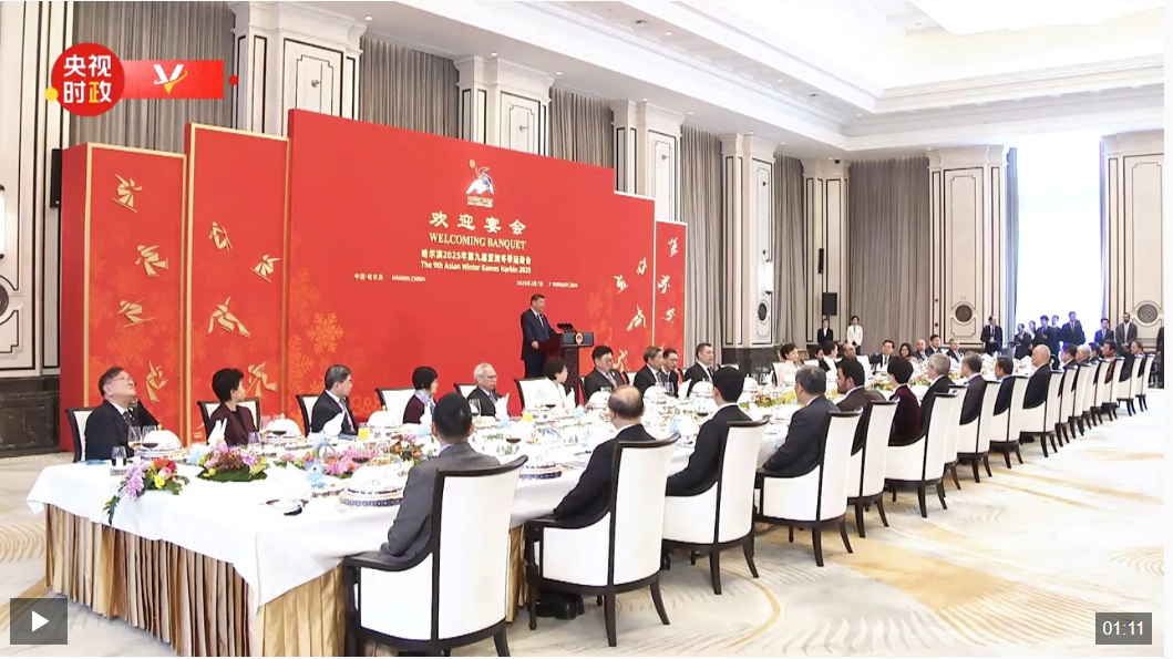 2月7日中午,國家主席習近平和夫人彭麗媛在黑龍江省哈爾濱市太陽島賓館舉行宴會,歡迎來華出席哈爾濱第九屆亞洲冬季運動會開幕式的國際貴賓。ByP安康新聞網