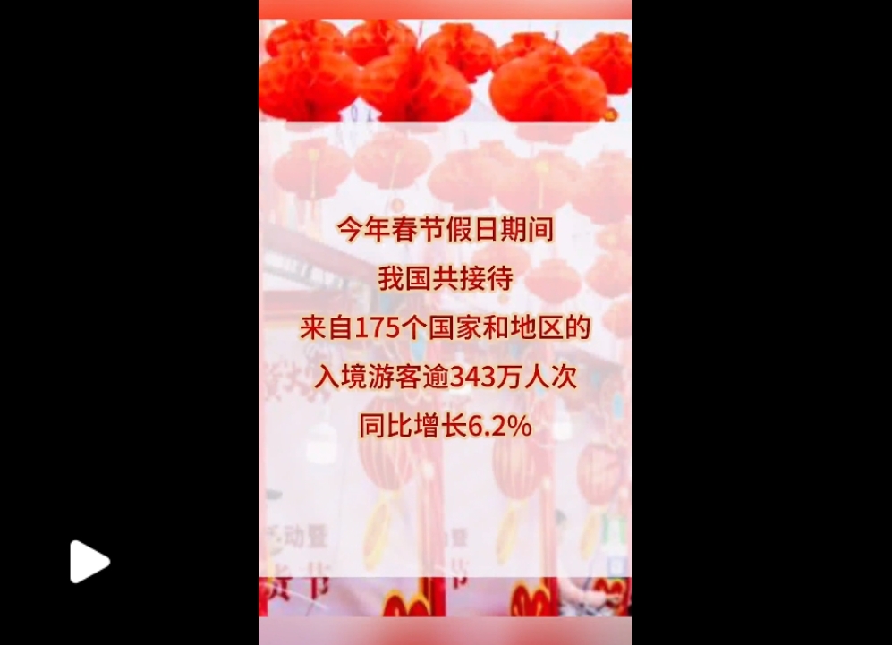 首個“非遺版”春節(jié),普天同慶,五洲同春。“來華體驗中國年”,是其中一道動人的風景。中國的高鐵上、景區(qū)里,時常可見外國游客的身影。數(shù)據(jù)顯示,今年春節(jié)假日期間,我國共接待來自175個國家和地區(qū)的入境游客逾343萬人次,同比增長6.2%。qnh安康新聞網(wǎng)