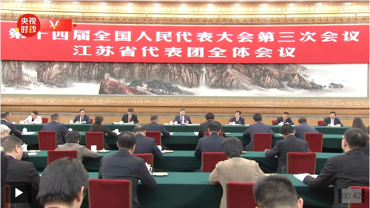 5日下午,中共中央總書記、國家主席、中央軍委主席習近平參加他所在的十四屆全國人大三次會議江蘇代表團審議。