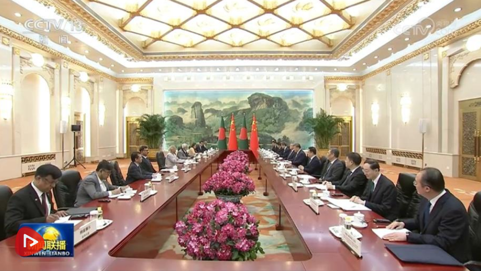 習(xí)近平指出,中孟人民友好交往源遠(yuǎn)流長,古老的絲綢之路把兩國緊密聯(lián)系在一起。建交以來,雙方始終相互支持、平等相待、合作共贏。中國對孟加拉國的睦鄰友好政策保持高度穩(wěn)定性和延續(xù)性,堅(jiān)定奉行面向全體孟加拉國人民的睦鄰友好政策,堅(jiān)持同孟方做彼此信賴的好鄰居、好朋友、好伙伴。今年是中孟建交50周年和中孟人文交流年。中方愿同孟方一道努力,推動中孟合作不斷邁上新臺階,更好造福兩國人民。