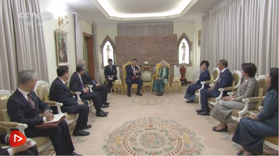 4月17日晚,國家主席習近平同柬埔寨太后莫尼列在金邊王宮舉行會見。