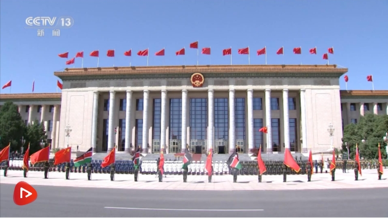 4月24日上午,國家主席習近平在北京人民大會堂同來華進行國事訪問的肯尼亞總統魯托舉行會談。這是會談前,習近平在人民大會堂東門外廣場為魯托舉行歡迎儀式。