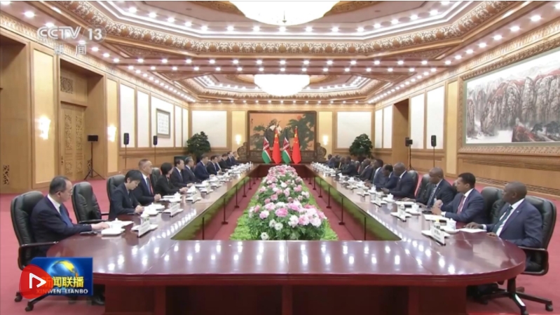 4月24日上午,國家主席習近平在北京人民大會堂同來華進行國事訪問的肯尼亞總統魯托舉行會談。兩國元首一致同意將雙邊關系定位提升至新時代中肯命運共同體。