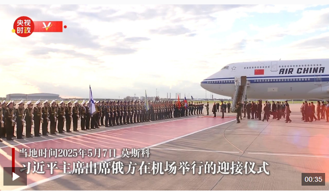 當?shù)貢r間5月7日晚,國家主席習(xí)近平乘專機抵達莫斯科,應(yīng)俄羅斯總統(tǒng)普京邀請,對俄羅斯進行國事訪問并出席紀念蘇聯(lián)偉大衛(wèi)國戰(zhàn)爭勝利80周年慶典。