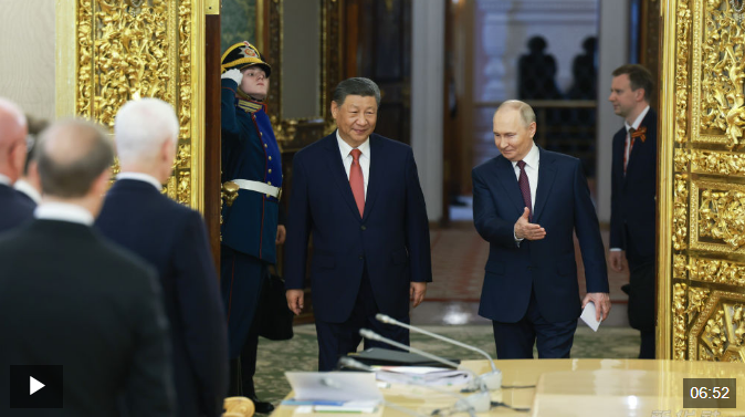 在同普京總統會談時,習主席指出,當前,面對國際上的單邊主義逆流和強權霸凌行徑,中方將同俄方一道,肩負起作為世界大國和聯合國安理會常任理事國的特殊責任,挺膺擔當,共同弘揚正確二戰史觀,維護聯合國權威和地位,堅定捍衛二戰勝利成果,堅決捍衛中俄兩國及廣大發展中國家權益,攜手推動平等有序的世界多極化、普惠包容的經濟全球化。