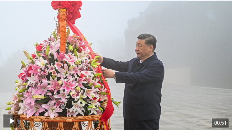 △獨家視頻|習近平在陽泉市向抗戰烈士敬獻花籃并參觀百團大戰紀念館