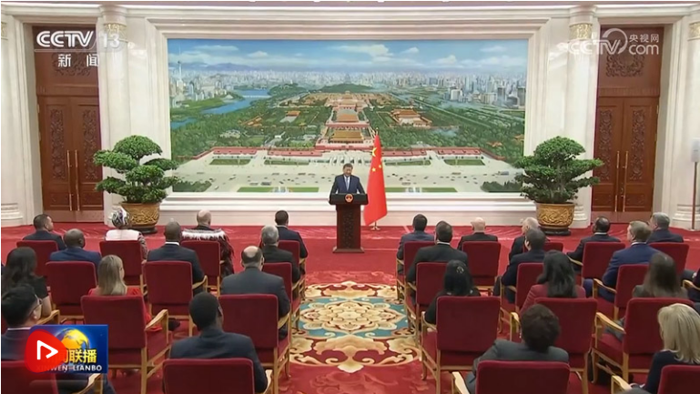 儀式結束后,習近平在北京廳對使節們發表講話。