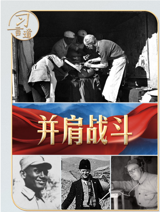 印度醫生柯棣華、法國醫生貝熙葉、德國人約翰·拉貝、丹麥人辛德貝格、英國人林邁可、國際主義戰士漢斯·希伯、蘇聯飛行大隊長庫里申科、美國“飛虎隊”......他們的事跡,習近平總書記曾多次動情講述。總書記還在國內外重要場合為曾幫助和支持中國抗戰的國際友人頒獎,向他們致敬。