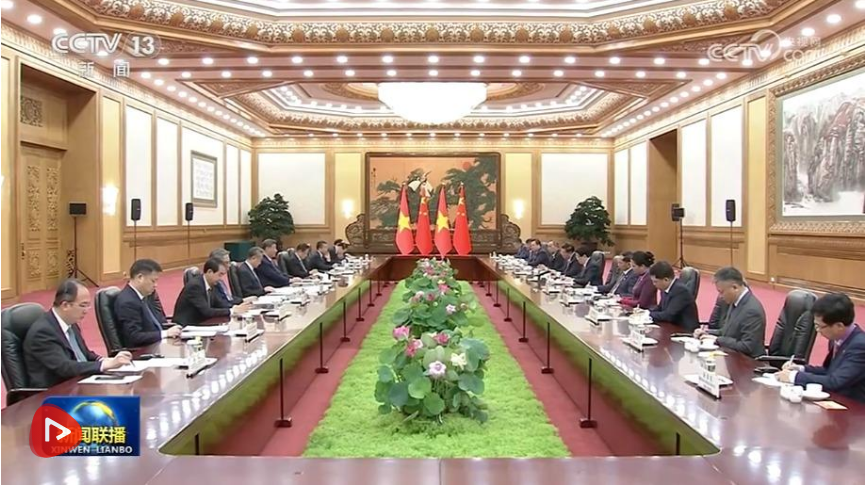 習近平強調,中方支持越南走好符合本國國情的社會主義道路,開好越共十四大。雙方要本著同志加兄弟的精神,深化治黨治國經驗交流,辦好建交75周年暨“中越人文交流年”系列活動,給兩國人民帶來切實利益。面對單邊主義、叢林法則逆流,越來越多的國家認識到,妥協退讓沒有出路,聯合自強才有希望。我提出全球治理倡議,就是要推動全球治理體系朝著更加公正合理的方向發展。中方愿同越方一道,維護全球南方共同利益,為世界提供更多正能量。