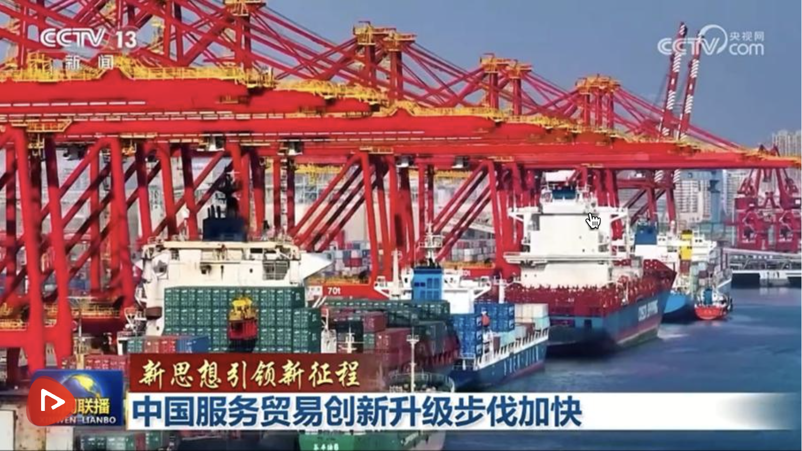 央視網消息(新聞聯播):習近平總書記指出,要創新提升服務貿易,主動對接國際高標準經貿規則,推動服務領域規則、規制、管理、標準相通相容。作為全球服務貿易第二大國,我國服務貿易創新發展加速推進,服務領域對外開放持續擴大。不斷煥新升級的“中國服務”,正為中國經濟注入新動能,也為世界經濟貢獻中國力量。