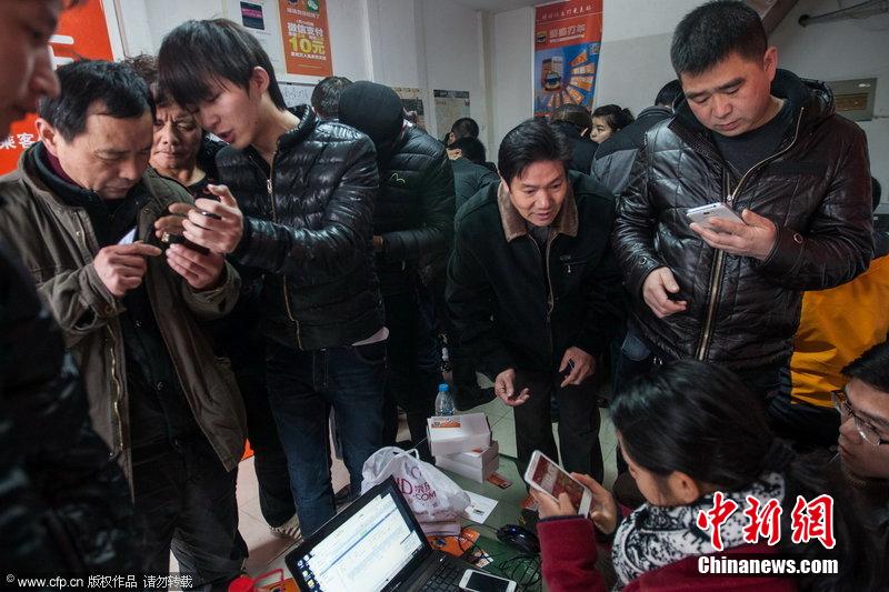 2014年2月19日,杭州“嘀嘀打車”服務點,工作人員指導前來安裝軟件的出租車司機操作使用。圖片來源:CFP視覺中國