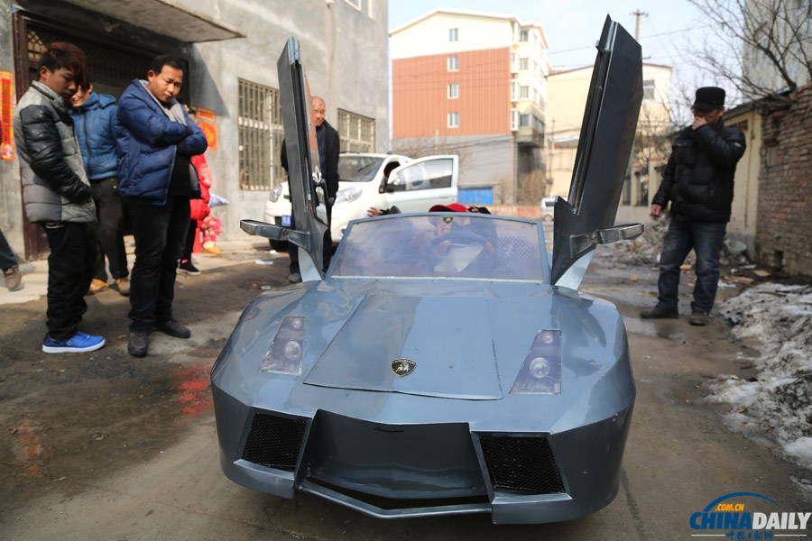 2014年2月19日,河南省鄭州市二七區(qū),一輛手工自制的跑車(chē)吸引了不少市民觀看。