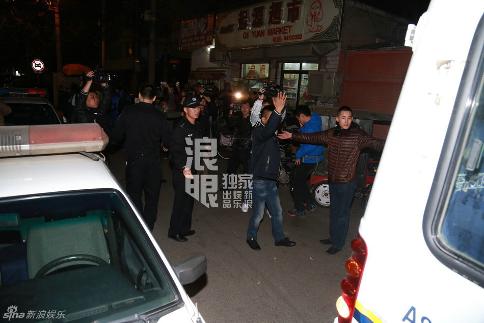 李代沫戴手銬離開派出所 被移送至朝陽分局