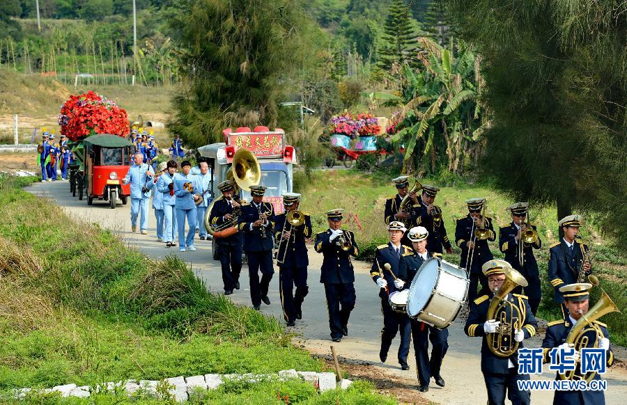 福建省長樂市一送葬隊伍走在村道上。這支送葬隊伍長達2公里多,據村民介紹,這場喪事花費至少上百萬元(4月5日攝)。 新華社記者 張國俊 攝 圖片來源:新華網