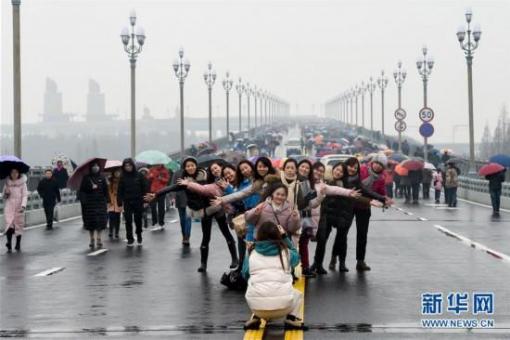 12月26日,游客在南京長江大橋拍照留念。 當日,經過全封閉維修改造后的南京長江大橋公路橋向公眾開放,吸引不少游客前往。 新華社記者 李博 攝……