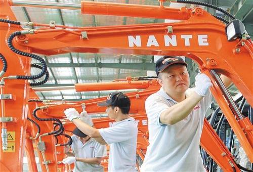 ▲江西省高安高新技術產業園南特機械有限公司的“扶貧車間”里,員工在安裝設備。該市引導企業通過“企業+扶貧車間+貧困戶”的形式,帶動有勞動能力的貧困群眾……