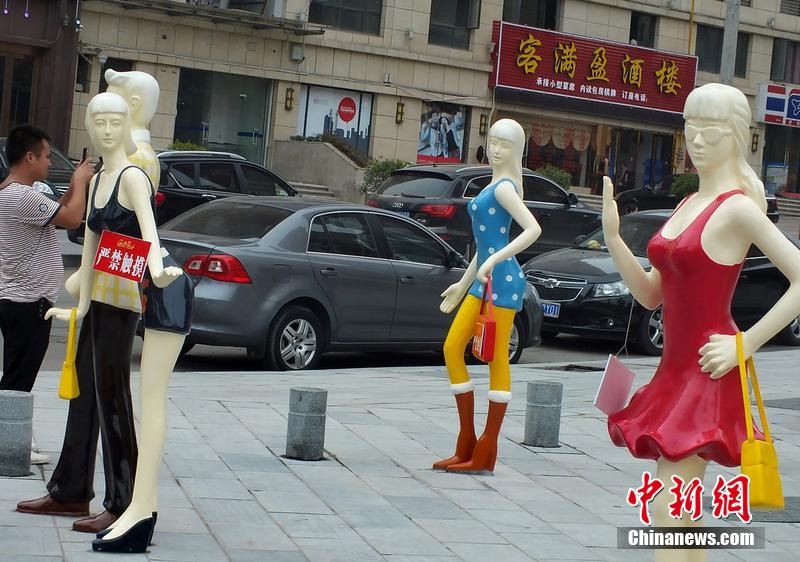 湖北一廣場性感模特塑像誘人“嚴(yán)禁觸摸”