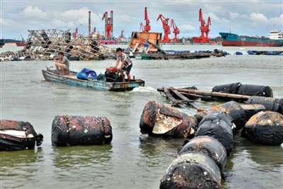 7月19日,受臺風“威馬遜”影響,一條虎頭鯨受傷擱淺在廣東陽江市海陵島附近海域,武警邊防官兵嘗試著將鯨魚送到深水區。昨日,廣西欽州漁民在搶修被臺風破壞的……