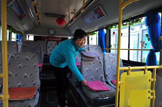 11月4日,司機(jī)正在安裝暖坐墊。中新社發(fā) 于海洋 攝11月4日,乘客坐在安放有暖坐墊的公交車。中新社發(fā) 于海洋 攝當(dāng)日,在沈陽230路公交車上,每個(gè)座位上都配備了一……