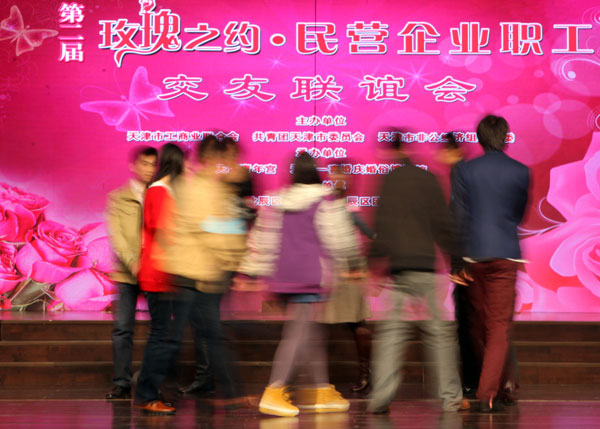 11月10日,前來相親的青年男女手牽手參與互動(dòng)游戲——“桃花朵朵開”。當(dāng)日,天津市“第二屆玫瑰之約·民營企業(yè)職工交友聯(lián)誼會(huì)”在天……