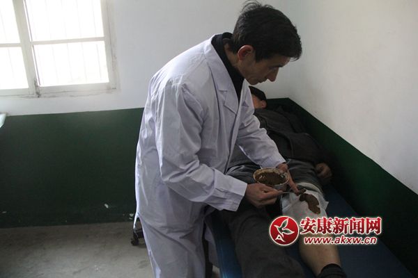 肖明國在給類風濕關節炎患者涂抹草藥